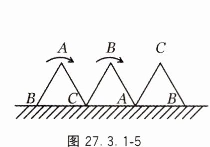 7. 若一块等边三角形的木板的边长为 1,现将木板沿水平线翻滚,如图 27.3.1 - 5 所示,则点 $B$ 从开始至结束所走过的路径长为 ______.