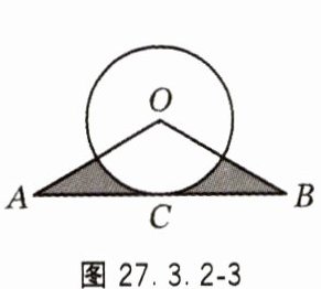 3. 如图 27.3.2 - 3,在$\triangle OAB$中,若 $OA = OB = 4$,$\angle A = 30^{\circ}$,$AB$ 与$\odot O$相切于点 $C$,则图中阴影部分的面积为 _________.