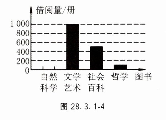 6. 某中学图书馆将图书分为自然科学、文学艺术、社会百科、哲学四类. 在“读书月”活动中,为了解图书的借阅情况,图书管理员对本月各类图书的借阅情况进行了统计,并将所得结果绘制成如下不完整的频率分布表与频数分布直方图(如图28.3.1-4). 请你根据图表中提供的信息,解答下列问题: