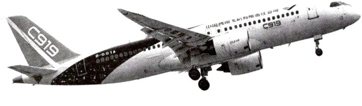 图6 - 5所示的是我国生产的C919大型客机。这是中国首款具有自主知识产权的大型喷气式干线民用飞机。“C”是中国商用飞机有限责任公司的英文缩写“COMAC”的第一个字母,也代表“China”。第一个“9”代表“长久”,后面的“19”则代表最大载客量可达190座。机长38.9米,机高12米,翼展35.8米。在设计上,C919采用超临界机翼,使巡航气动效率提高了20%以上。大量使用世界先进的第三代铝锂合金材料,尚属国内首次。航电系统核心使用目前国际先进的高度集成数据处理和网络传输技术,提高了安全性。2007年,研制大型飞机重大专项获批立项。2015年,首架C919飞机正式总装下线,标志着中国成为世界上少数几个有能力研制大型客机的国家。