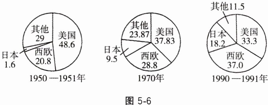 4. 图5-6是1950—1991年美、日、西欧及其他国家工业生产比重(%)变化示意图。促使这一时期西欧和日本所占比重发生变化的共同外部因素是( )。