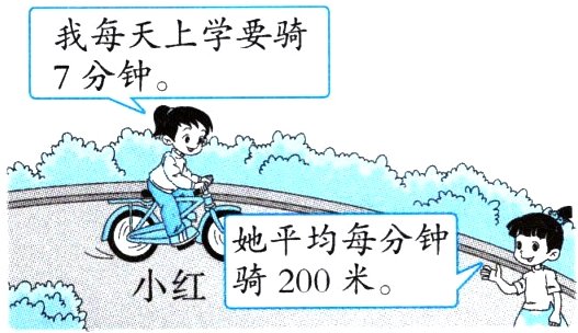 (1)小红每天从家到学校需要往返2次,她每天一共要骑多少米?