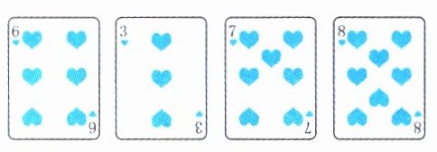 5. 右面4张扑克牌上的点数,经过怎样的运算才能得到24呢?
