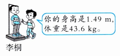 李桐的身高是( )m,合( )cm;体重是( )kg,合( )g。