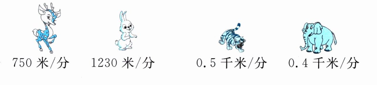 4. 下面是四种动物的奔跑速度,把它们的奔跑速度按从慢到快的顺序排列。