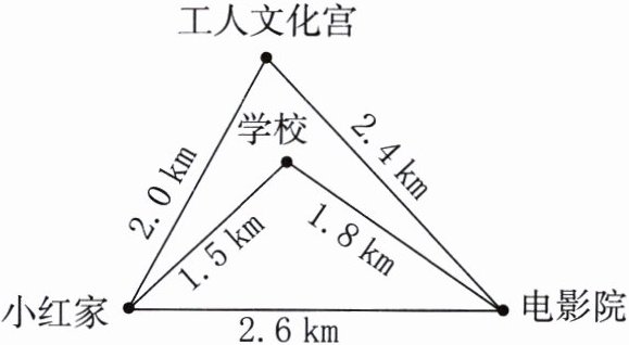 有3条路可以走。从小红家直接到电影院最近,因为三角形任意两边的和大于第三边。