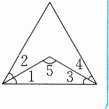 如图,在等边三角形内有一个等腰三角形,并且$\angle 1 = \angle 2$,$\angle 3 = \angle 4$,求$\angle 5$的度数。