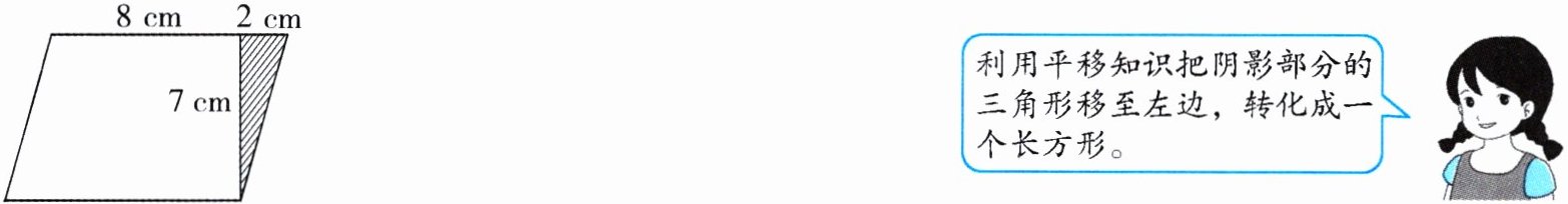 4. 在下面的平行四边形中,把阴影部分的三角形向左平移多少厘米,可以使平行四边形转化成长方形?计算这个长方形的面积。