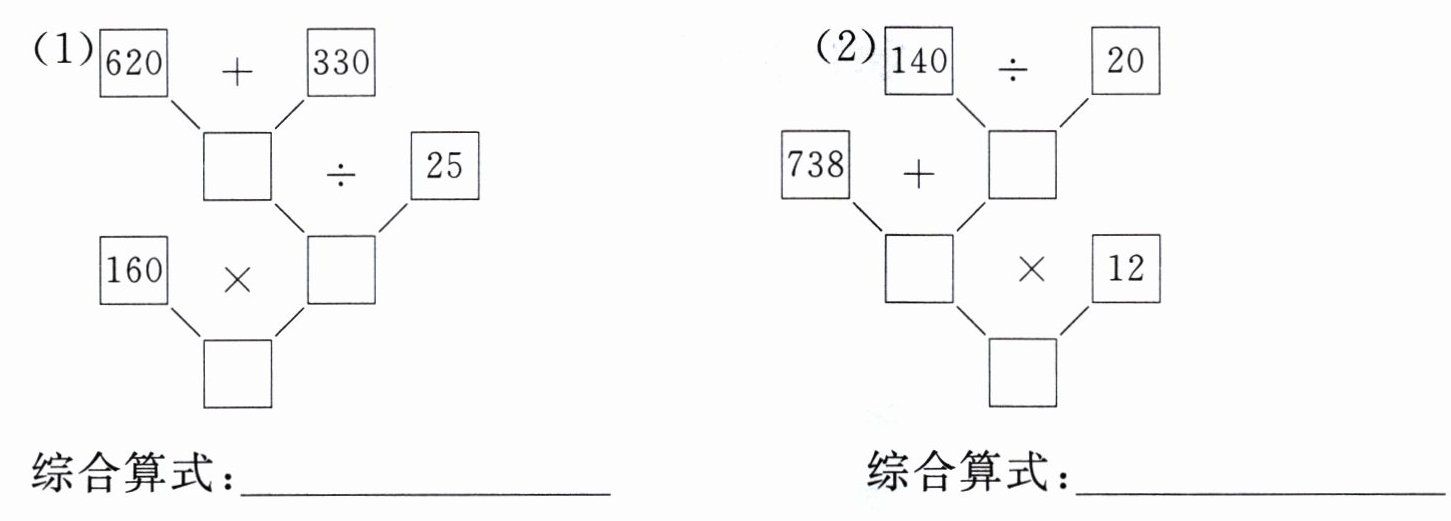 950@@38@@6080@@$160×[(620 + 330)÷25]$@@7@@745@@8940@@$(738 + 140÷20)×12$