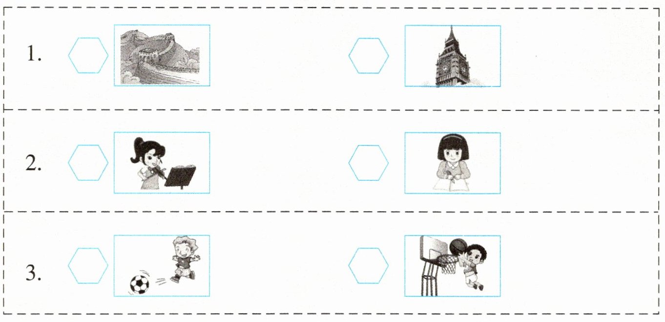 Ⅰ. 听短语,用阿拉伯数字给下列图片排序。
