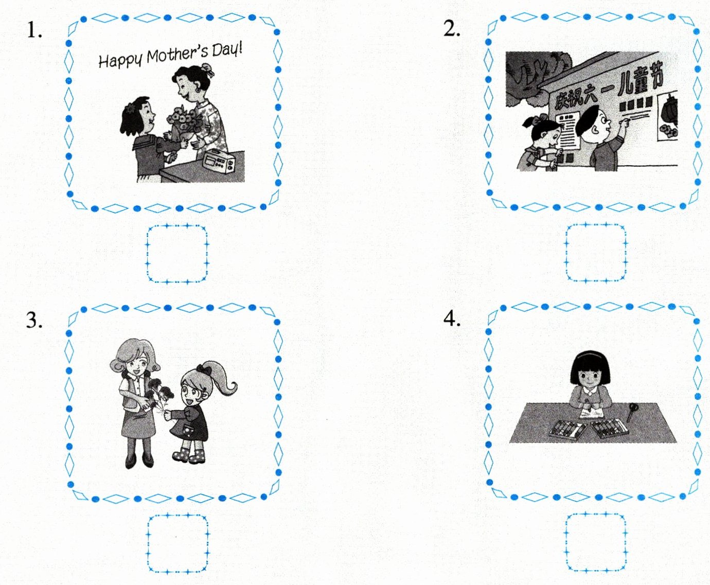 III. 听句子,如果图片与录音内容相符请画“√”,不符请画“×”。