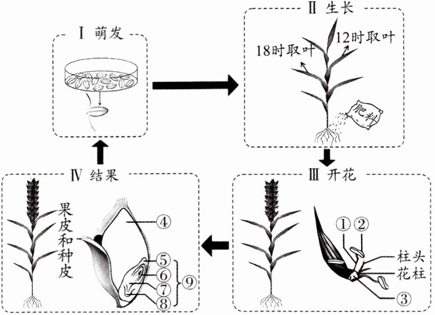 6. 小德学习了绿色开花植物的知识后,完成了小麦的栽培实践活动并绘制出如下信息卡片。据图回答。