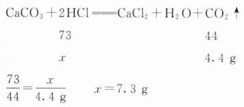 所用稀盐酸的溶质质量分数为$\frac{7.3g}{100g}×100\%=7.3\%$。