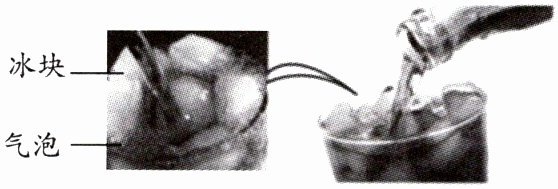4. 将某碳酸饮料拧开,倒入装有冰块的杯中,如图所示。下列分析合理的是( )。