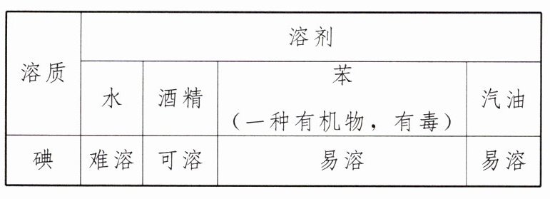 3. 衣服上沾有碘极难洗净。根据下表分析,家庭中去碘污渍最好选用( )。