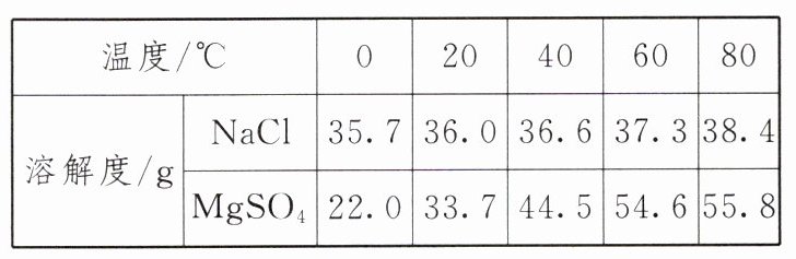 - ①$NaCl$和$MgSO_4$在不同温度下的溶解度如下表所示。