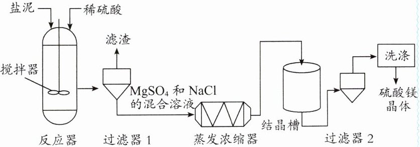 10. 某工厂在粗盐的提纯过程中产生了大量的“盐泥”[主要成分为$Mg(OH)_2$、$BaSO_4$和$NaCl$]。利用“盐泥”制备硫酸镁晶体的工艺流程如图所示。