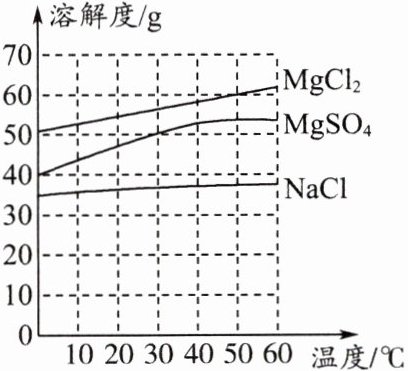 1. 坐落在唐山市曹妃甸区的南堡盐场是全国乃至亚洲最大的海盐生产场,这里的生产以海水晒盐为主。已知20℃海水中主要成分及其溶质的质量分数如下表所示。参考下图所示的海水中主要成分的溶解度曲线,判断下列说法错误的是( )。