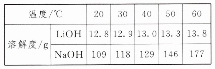 $Li^{+}$、$Na^{+}$@@LiOH 的溶解度受温度变化的影响很小@@100@@不饱和@@$Li_{2}CO_{3}+2HCl = 2LiCl + H_{2}O + CO_{2}\uparrow$