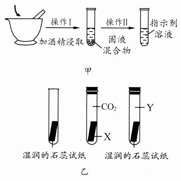(1)甲是用鲜花自制指示剂的实验,操作Ⅱ的名称是 过滤 。能够检验溶液酸碱性的自制指示剂应具备的条件是 遇酸性、碱性溶液显示不同的颜色 。