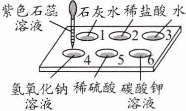 8. 如图所示,在点滴板1~6的孔穴中,分别滴加2滴紫色石蕊溶液。