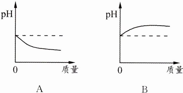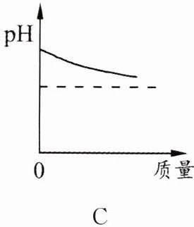 7. 下列三个图像中,横坐标表示加入物质的质量,纵坐标表示溶液的pH。请将图像标号填在相对应的实验事实后面的横线上。