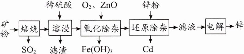例 金属锌在冶金、化学电源等方面具有重要作用。以闪锌矿(主要含 ZnS,还含有 SiO₂和少量 FeS、CdS、PbS 杂质)为原料制备金属锌的流程如图所示: