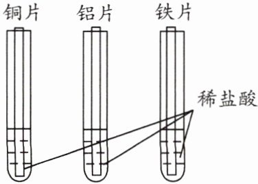 8. 为探究铝、铁、铜三种金属的活动性顺序,甲同学设计的实验方案(金属片的大小、形状均相同,且实验前均已打磨)如图所示。