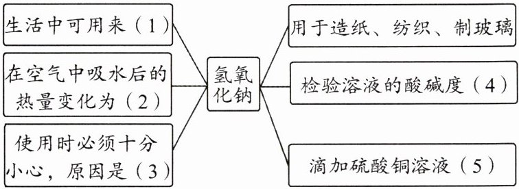 7. 以典型物质为核心进行问题的设置与整合,是我们全面认识物质性质及应用的有效途径。小明同学在小组合作学习过程中,对氢氧化钠的相关问题以结构图的形式进行了如下梳理: