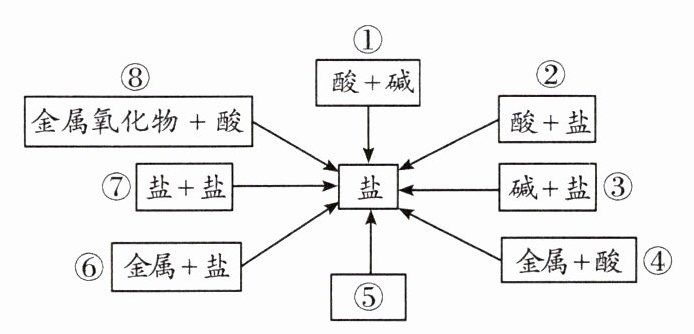8. 小华学习了单质、氧化物、酸、碱、盐的性质后,发现许多不同类别的物质反应时都能生成盐,于是她构建了如图所示的知识网络。结合此图,回答下列问题: