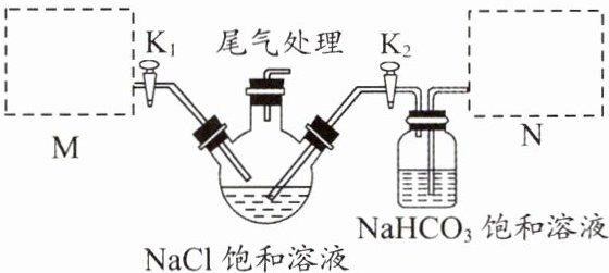 Ⅱ. 我国制碱工业先驱侯德榜先生改进西方制碱工艺并发明了侯氏制碱法,使氯化钠的利用率大大提高,为纯碱和氮肥工业发展作出了杰出贡献。某学习小组在实验室模拟侯氏制碱法,用精制饱和食盐水、NH₃、CO₂作为原料制取 NaHCO₃,设计的装置如图所示,其中 M、N 分别为实验制备 NH₃、CO₂ 的发生装置。