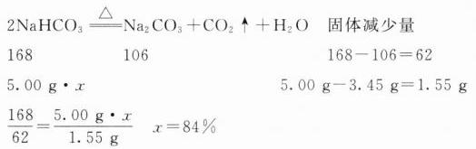 (8)取 5.00 g 产品,充分受热分解(杂质受热不分解且不与 NaHCO₃ 反应),待冷却至室温后称量,最终得到残留固体 3.45 g。请计算产品中 NaHCO₃ 的纯度(写出计算过程)。