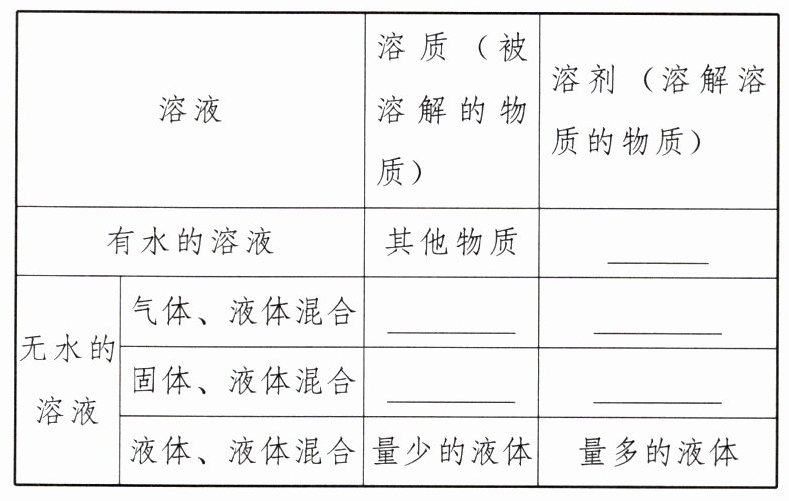 (1)水 气体 液体 固体 液体 (3)①溶质 溶剂