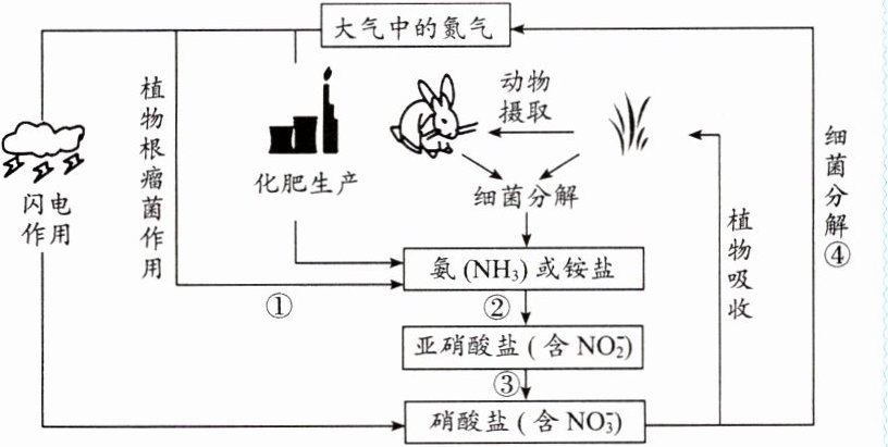 (1)将大气中的氮气转化为氮的化合物的过程叫作氮的固定。①②③④中,属于氮的固定的是______。