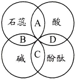 5.小明学习酸碱指示剂与常见酸、碱溶液作用后,归纳总结出如下图所示的关系。图中A、B、C、D是两圆