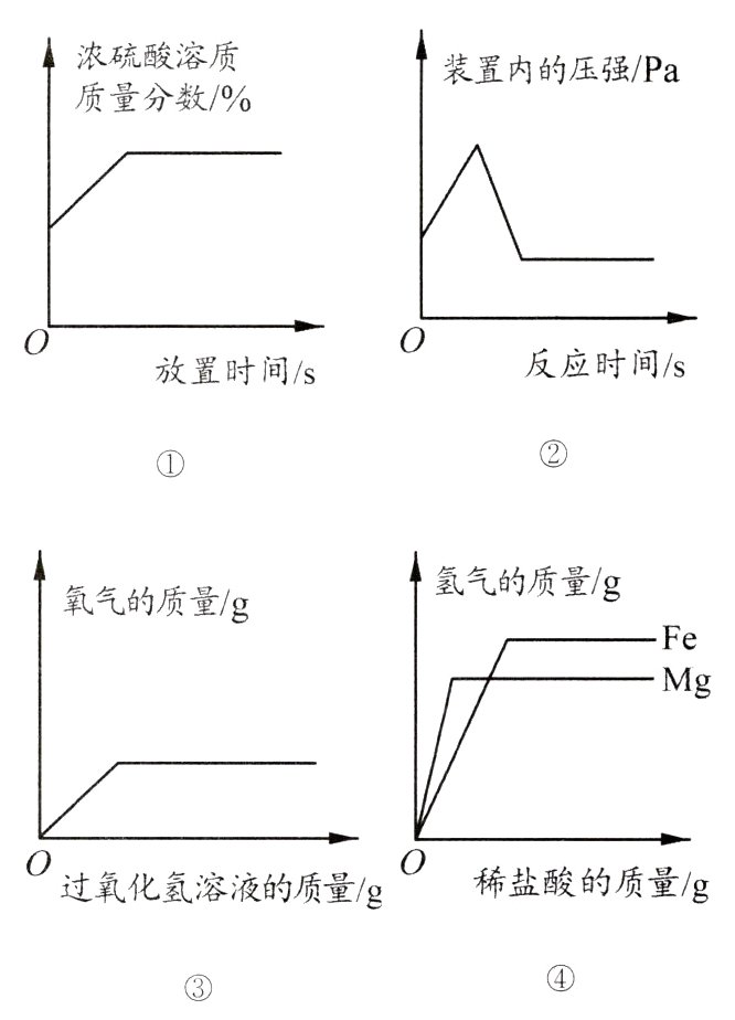 6.如图所示四个坐标图分别示意实验过程中某些量的变化,其中正确的是( )。