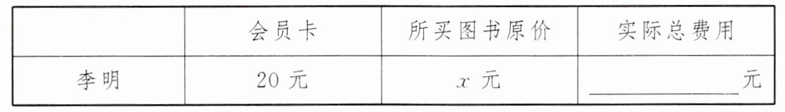 3. 张欣和李明相约到图书城去买书,请根据他们的对话内容,完成表格并求出李明上次所买图书的原价.