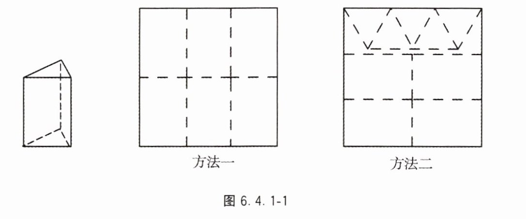 4. 用正方形硬纸板做三棱柱盒子,每个盒子由 3 个长方形侧面和 2 个等边三角形底面组成. 硬纸板以如图 6.4.1 - 1 所示的两种方法裁剪(裁剪后的边角料不再利用).