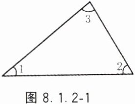 1. 如图 8.1.2-1,在三角形中,$\angle1 = 40^{\circ}$,$\angle2 = 60^{\circ}$,则$\angle3$的度数为( ).