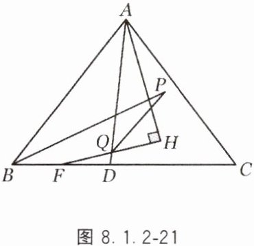 (3)如图 8.1.2-21,在(2)的条件下,点$F$在线段$BD$上,$\angle P = 18^{\circ}$时,求$\angle BFQ$的大小.