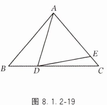 (1)如图 8.1.2-19,点$E$在线段$AC$上,$\angle ADE = \angle AED$,求证:$\angle BAD = 2\angle CDE$;