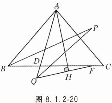 (2)如图 8.1.2-20,$AH$平分$\angle CAD$,点$F$在线段$CD$上,$FH\perp AH$交$AD$延长线于点$Q$,$\angle ABC$与$\angle AQH$的角平分线交于点$P$,求证:$2\angle P = 3\angle BFQ$;