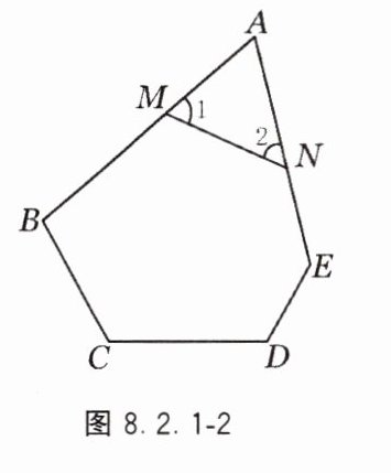 4. 如图 8.2.1-2,在五边形 $ABCDE$ 中,点 $M$、$N$ 分别在 $AB$、