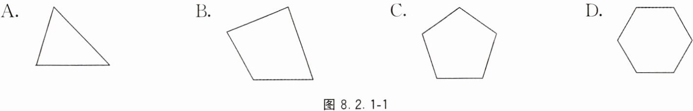 1. 如图 8.2.1-1 所示的多边形中,内角和等于 $360^{\circ}$的是( ).