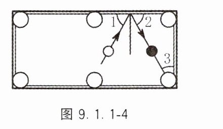 5. 如图9.1.1 - 4,∠3 = 30°,为了使白球反弹后能将黑球直接撞入袋中,那么击打白球时,必须保证∠1的度数为多少?