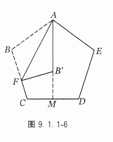 7. 如图9.1.1 - 6,将正五边形纸片ABCDE折叠,使点B与点E重合,折痕为AM,展开后,再将纸片折叠,使边AB落在线段AM上,点B的对应点为点B′,折痕为AF,求∠AFB′的大小.