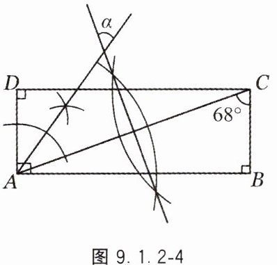 4. 如图9.1.2-4,四边形ABCD是长方形,∠ACB = 68°,依据尺规作图的痕迹,计算∠α的度数为______.