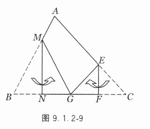 9. 如图9.1.2-9,在△ABC中,将∠B和∠C按如图所示方式折叠,点B、C均落于边BC上一点G处,线段MN、EF为折痕. 若∠A = 94°,求∠MGE的度数.