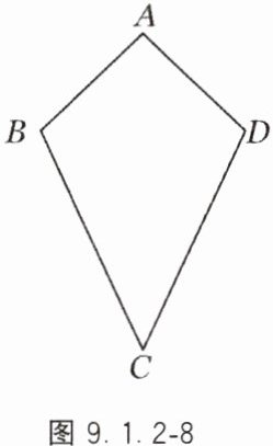 8. 研究一类几何图形,我们首先需要给出这类图形的定义. 如图9.1.2-8,有这样一类凸四边形ABCD,它满足AB = AD,CB = CD,这时,我们习惯上将这样的图形称为筝形. 请你用文字语言给筝形下个定义:______________________________.