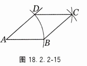 3.如图18.2.2−15,用直尺和圆规作一个菱形,能得到四边形ABCD是菱形的依据是( ).